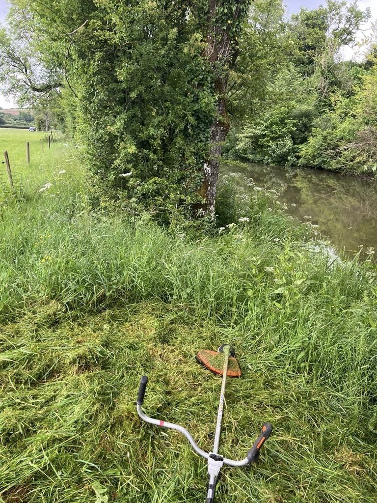 Two hard days were spent clearing the 1st two fields of Nutford at the beginning of June & the Team were back in action this weekend taking on the Crown Meadows & the Pops. As animals are no longer able to graze the banks of the river, the undergrowth is a veritable jungle that requires more than blood, sweat & tears & serious equipment. Thank you Pete, Tony, Bry & esp Paul who travelled all the way from Hampshire to help us out.